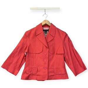Larry Levine Womens Coral Swing Jacket Cropped Linen-Blend Blazer 3/4 Sleeve XL