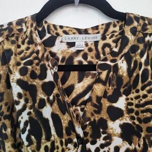 Larry Levine Womens Size L Leopard Print Long Sleeve Waist Tied Dress