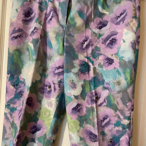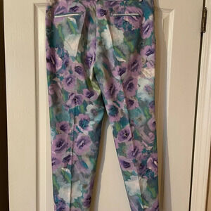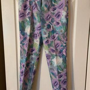 Larry Levine Women's Straight Leg Floral Stretch Trouser Flat Front Pant Size 10