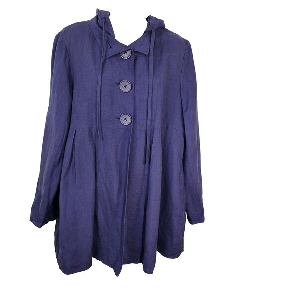 Larry Levine Womens Swing Jacket Size 12 Purple Hooded Linen Blend Lined Pleats