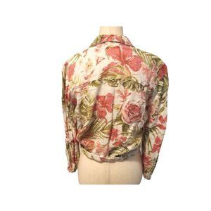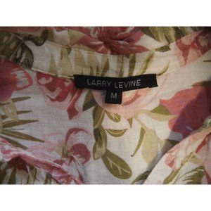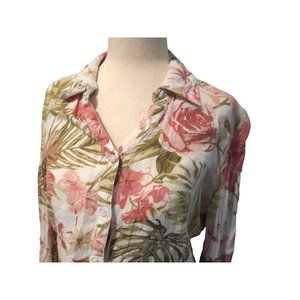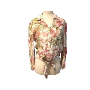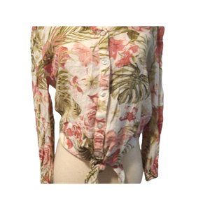 Larry Levine Womens Top M Tie Front Cropped Linen Hawaiian Button Long Sleeve
