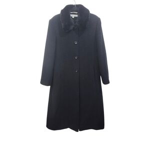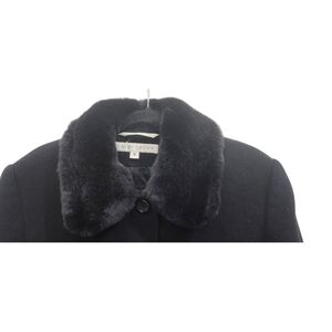Larry Levine Wool coat size 12 Black with Fur Trim Collar