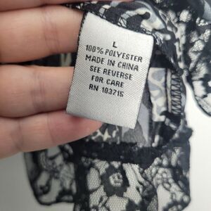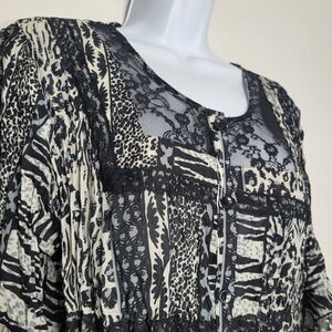 Larry Levine black white mixed print grunge lace abstract art to wear top large
