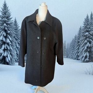 Larry Levine charcoal black button down full length warm dressy wool coat sz 10