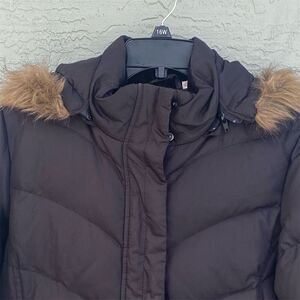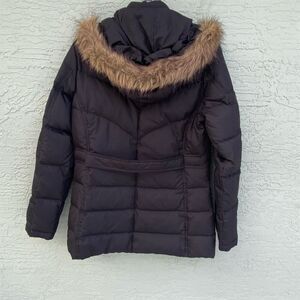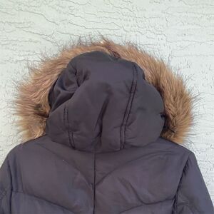 Larry Levine Women's Black Down Puffer Coat Faux Fur Removable Hood Size S