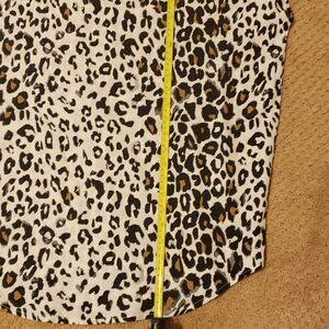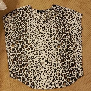 Beautiful leopard design. Oversized medium. It may fit as large. Perfect to pair with jeans slacks or leggings. Great pre-owned condition