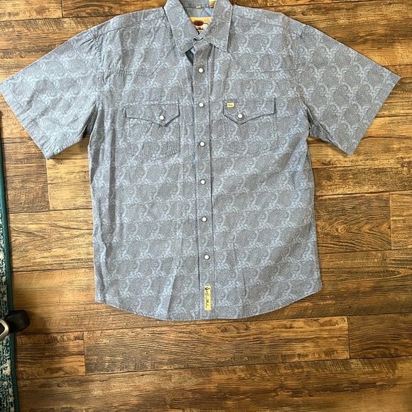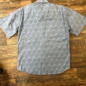 Larry Mahan Blue Casual Button Down Shirt with Floral Pattern