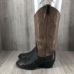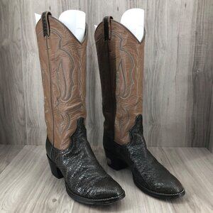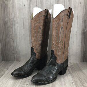 Larry Mahan Snake Skin and Leather Pull On Western Cowboy Boots Women's Size 6B (260)