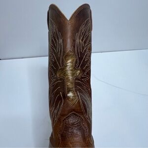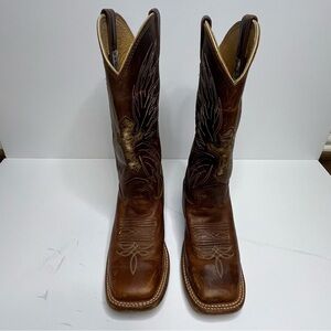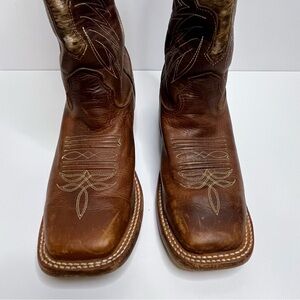 Larry Mahan Brown Leather Square Toe Cross Hair Western Cowboy Boots Size 6B