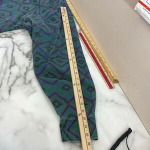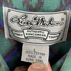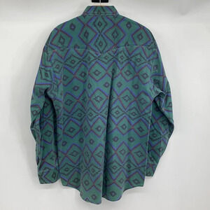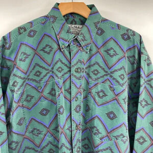Larry Mahan Button Down Shirt Mens Size Large Green Blue Vintage Rodeo Geometric