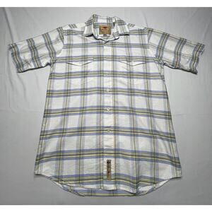 Larry Mahan Cowboy Collection Men’s White Blue Plaid Button Up Shirt - Size M