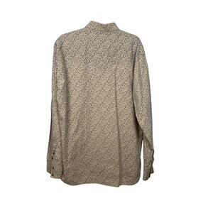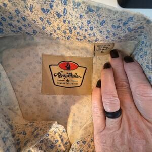 This Larry Mahan Cowboy Collection men’s pearl snap shirt is a western classic. With a micro blue floral print on a beige background, it’s both stylish and authentic. Perfect for rodeo, ranch wear, or vintage western styling.