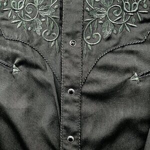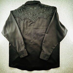 Larry Mahan Cowboy Collection Western Pearl Snap Shirt Size XL Black Embroidered