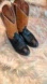 Larry Mahan El Paso Leather Tooled Western Boots Black Tan Mens 8.5 Ladies 10