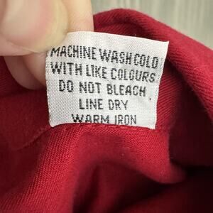 Care tag: Machine wash cold with like colors; do not bleach; line dry; warm iron
