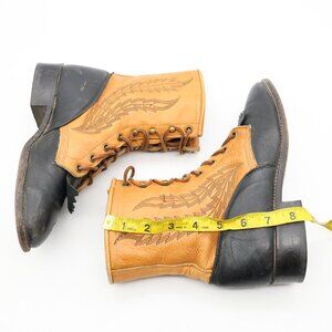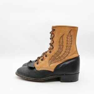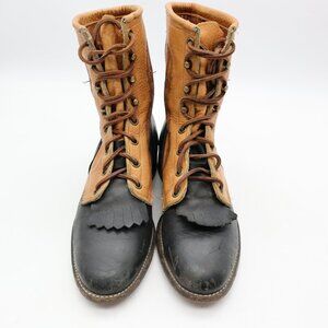 Larry Mahan Women's Size 7.5 M Brown & Black Leather Lacer Boots Lace Up USA
