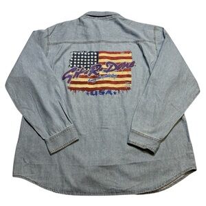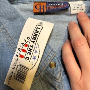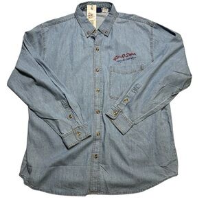 Larry The Cable Guy Long Sleeve Light Blue Denim Shirt Sz XLarge Comedy Badger