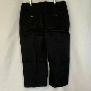 Black capri, button up, wide leg, high waist, size 6p, W-30, R-9, I-19, C- 18, front button flap accent, front pockets, and rear flap w/buttons,