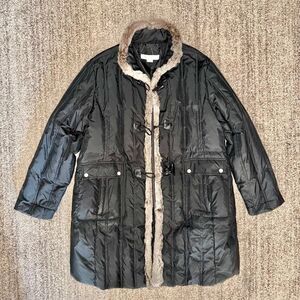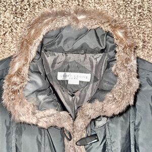 Larry Levine Down Real Rabbit Trim Outerwear Puffer Jacket Black Brown