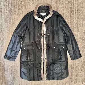 Larry Levine Down Real Rabbit Trim Outerwear Puffer Jacket Black Brown XL