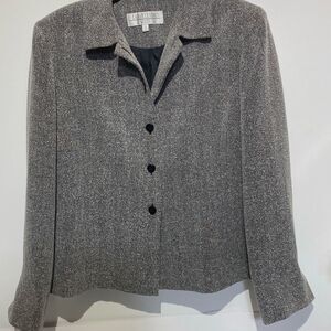 Larry Levine Women's Gray Collared Button Front Lined Suit Jacket Blazer Size 12