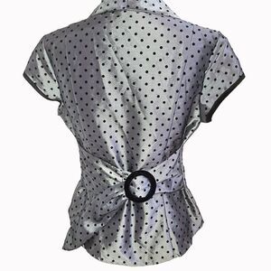 Larry Levine silver polka dot belted sash top