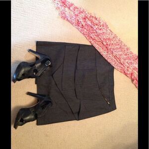Cute skirt by Larry Levine in size 10, with little ruffley things in front. This is new without tags. It is 77% cotton 20% poly & 3% spandex. It is machine washable. Has a back zipper, front zipper is for decoration only. Come from a smoke free home
