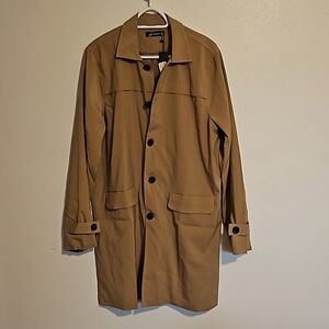 Lars Amadeus trench coat NWT sz. L two front flap pockets non wrinkle