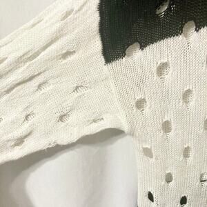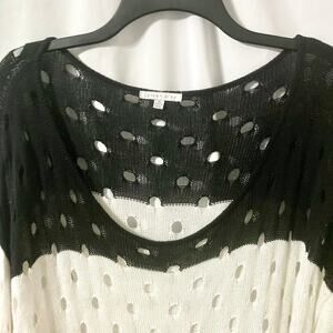 Larsen Gray Women's XL Black and White Distressed Open Knit Sweater