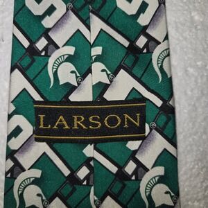 Larson Mens Michigan State Spartans Tie Green White Greek Pattern