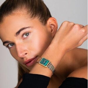 A timeless design taken to new heights! Elevating the classic charm of the Iconic Boyfriend with dazzling definitions and contemporary allure, the Boyfriend Mini Lumous Gold Green is an opulent choice that doesn't stray from its vintage inspired roots. The petite 31mm square dial showcases chic numerals on a lavish green, crystal-framed face with intricate crystal details, finished with the classic link chain band.