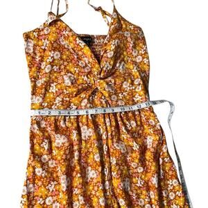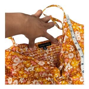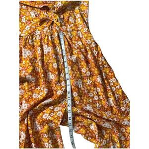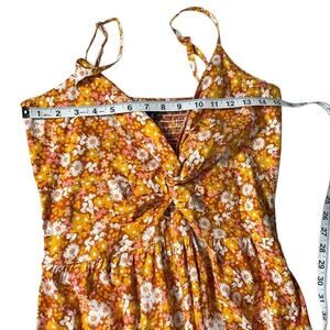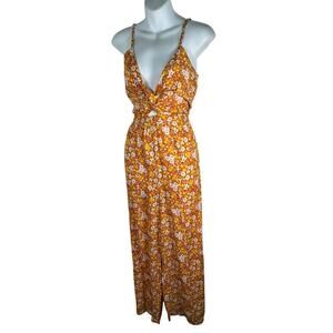 Larsyn & Lily Floral Burnt Orange Jumpsuit Smock Back Deep V-Neck With Twist Not & Key Hole on Chest Size Large Wide Leg