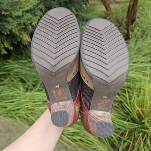 L’artiste Sping Step Bardot Pump Red Brown Leather Heels Oxford Bootie Block