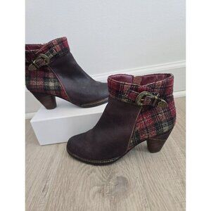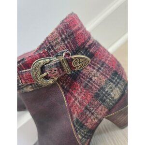 L'artiste Spring Step Scottala Burgundy Red Leather Zip Plaid Ankle Boots 39 8.5