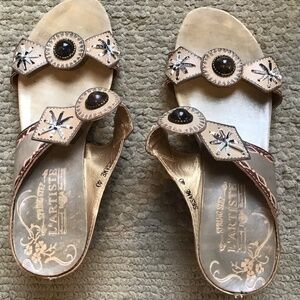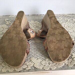 L’artiste Spring Step Sesame womens 9.5 tan floral wedge heel slip on sandals