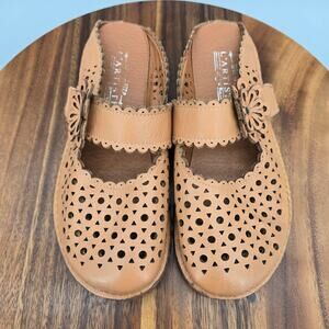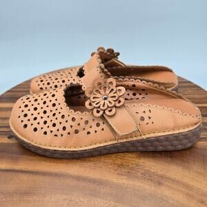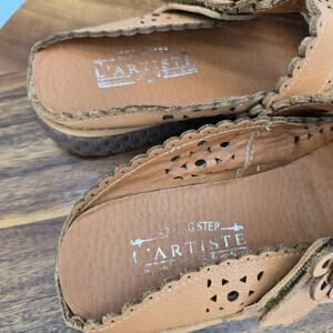 L'artiste Spring Step Shoes Womens 7.5 Tan Leather Mary Jane Perforated Mules