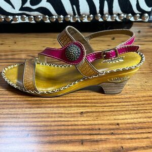 L’artiste by Spring Step Dreamer Leather Sling Heeled Sandals Floral Detail Sz
