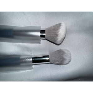 This is a set of two new, unused makeup brushes from the brand "Llaruce". The brushes are still in their original packaging and have never been used. The set includes a "Duo Fibre" brush and an "Angle" brush.