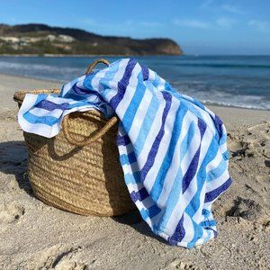 Las Bayadas Blue Striped Beach Towel Blanket La Esther NWT
