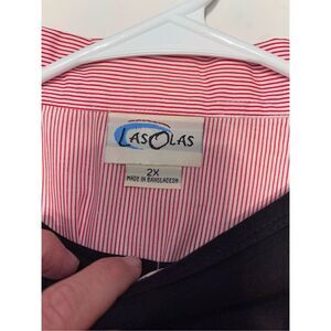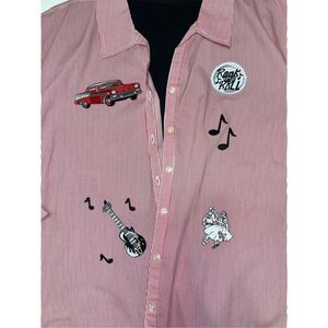 Las Olas Rock And Roll Lost in the 50s Red White Striped Long Sleeve Button Up X