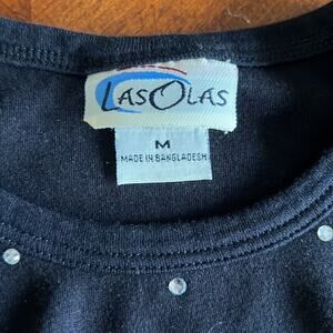 Las Olas Size M Black “Wine Princess “ Embellished Knit Top Boxy Fit Y2K