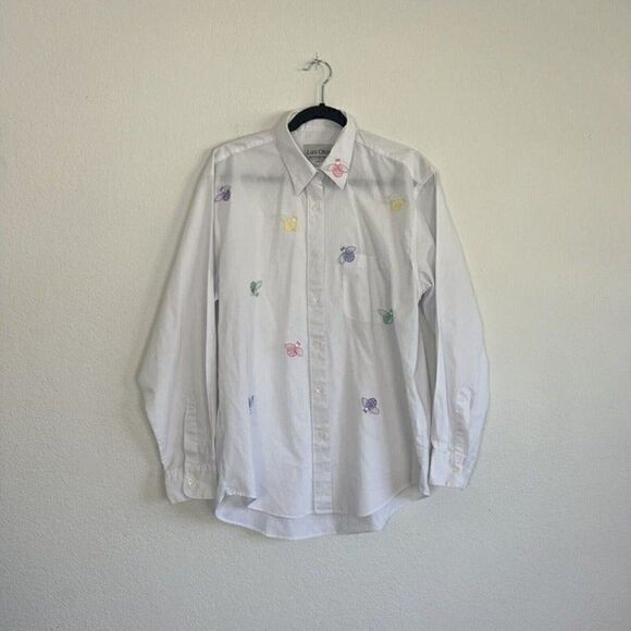 Las Olas Vintage Womens Rainbow Ladybug Button up Blouse Long Sleeve Size Large