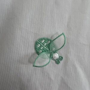 Adorable women’s vintage white pinstriped blouse with rainbow 3D patch embroidered ladybug throughout