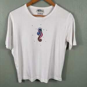 Las Olas Women's Size Medium Studded Seahorse Polo and Shirt Nautical Theme Wear