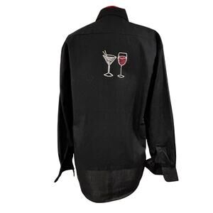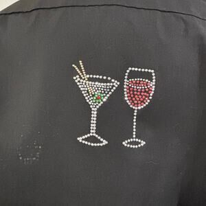 Las Olas black bejeweled novelty blouse Group Therapy cocktail glasses Size M