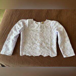 Las Pepas Light Purple Floral Embroidered Long Sleeve Sheer Shirt Floral Buttons