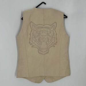 Las Surenas 100% Leather Tiger Embroidered Vest In Ivory