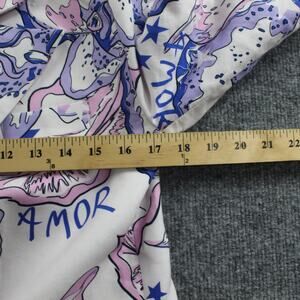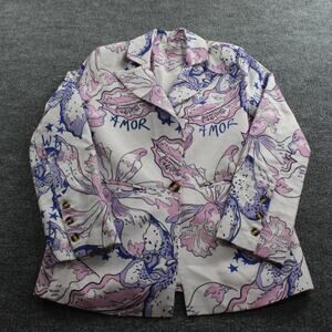 Las Sureñas Blazer Pants Set Womens XS Pink Blue Amor Print Linen Cotton Suit