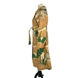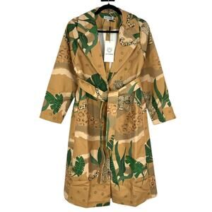 Las Surenas Jungle D'Amour Leopard Print Coat Camel Size Large; Feel vacation vibes all year long in this leopard and monstera print lightweight trench coat.