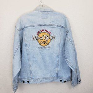 Vintage Las Vegas Hard Rock Cafe Save the Planet Light Wash Oversize Denim Jacket
